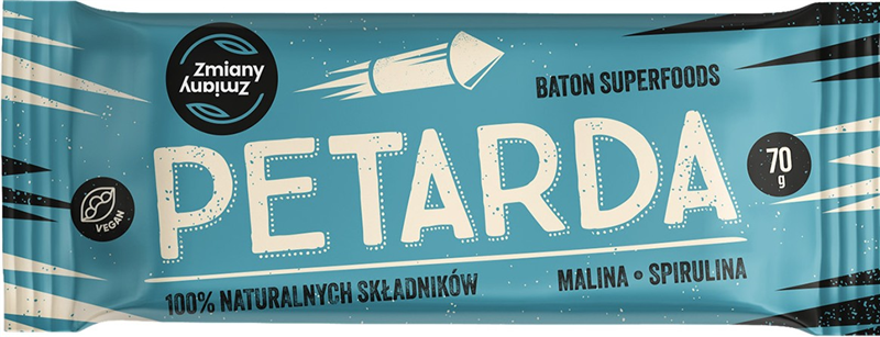 BATON BAKALIOWY Z MALINAMI I SPIRULINĄ PETARDA BEZGLUTENOWY 70 g - ZMIANY ZMIANY