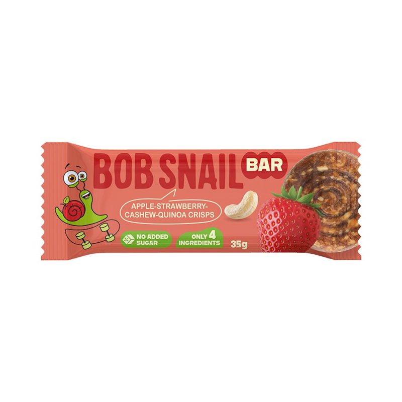 BATON JABŁKO - TRUSKAWKA - ORZECHY NERKOWCA BEZ DODATKU CUKRÓW 35 g - BOB SNAIL