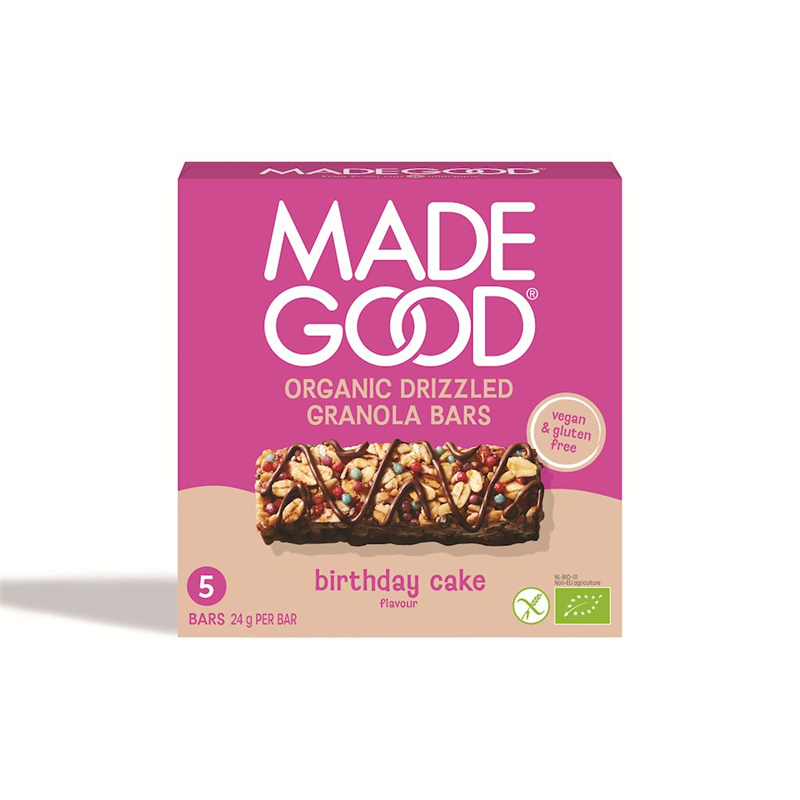 BATONIKI GRANOLA CRUNCHY SMAK TORT URODZINOWY BEZGLUTENOWE BIO (5 x 24 g) 120 g - MADEGOOD