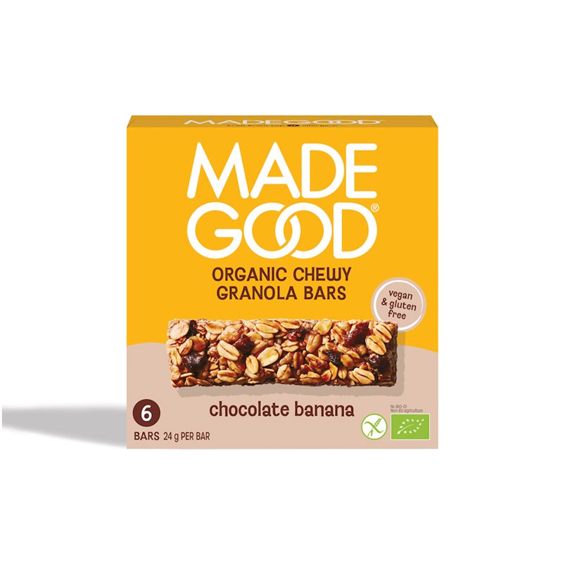 BATONIKI GRANOLA CRUNCHY Z CZEKOLADĄ I BANANEM BEZGLUTENOWE BIO (6 x 24 g) 144 g - MADEGOOD