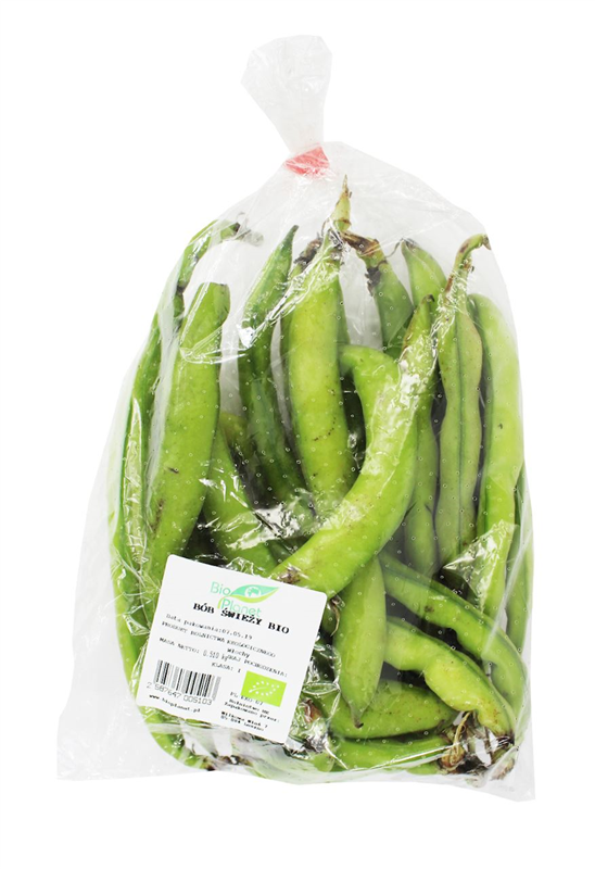 Bób pakowany jest w tackę i folię perforowaną. Produkt waży około 0,50 kg. Podana cena to cena za 1 kg bobu.