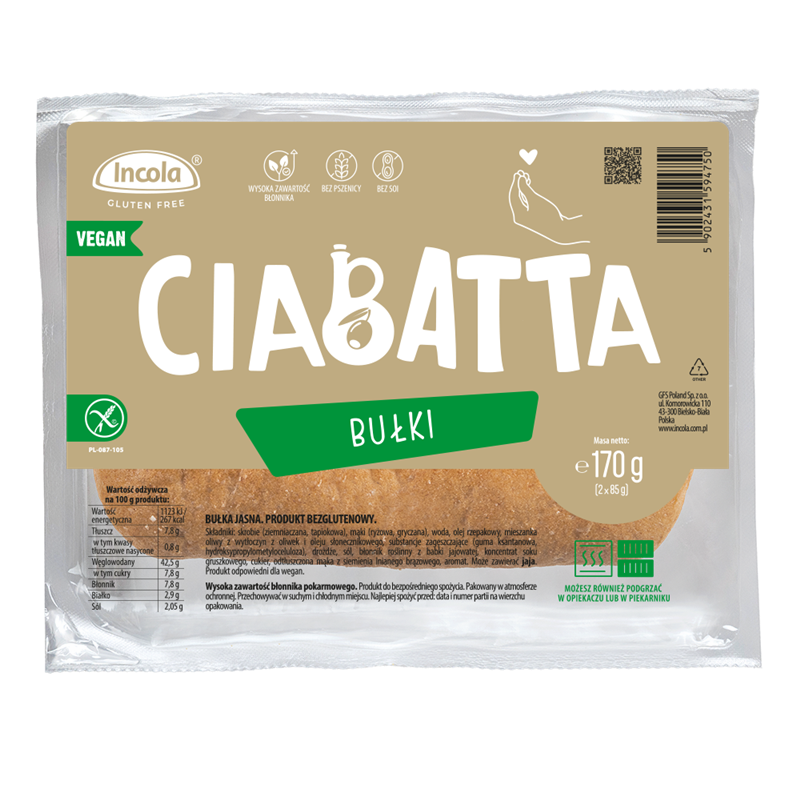 BUŁKI CIABATTA BEZGLUTENOWE (2 szt.) 170 g - INCOLA