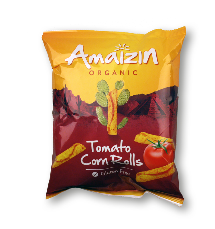CHIPSY KUKURYDZIANE ROLLS O SMAKU POMIDOROWYM BEZGLUTENOWE BIO 100 g - AMAIZIN