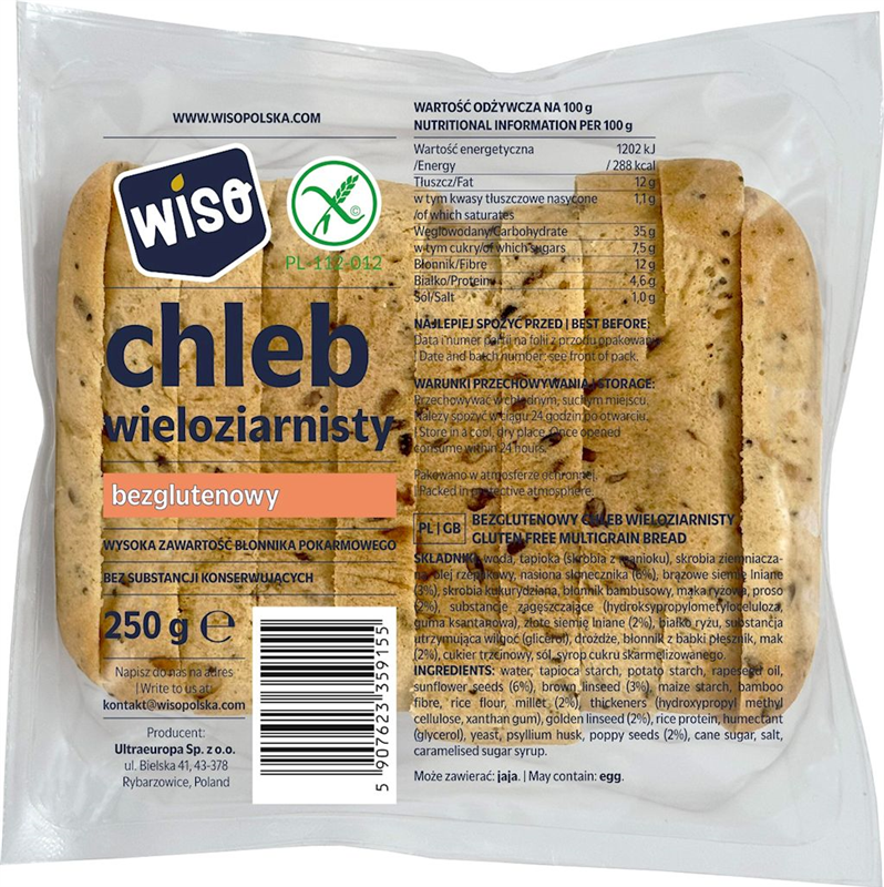 CHLEB WIELOZIARNISTY KROJONY BEZGLUTENOWY 250 g - WISO