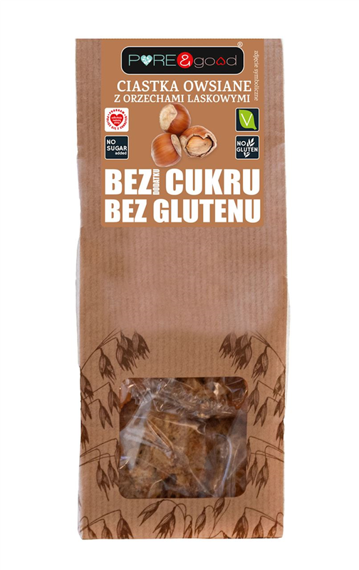 CIASTKA OWSIANE Z ORZECHAMI LASKOWYMI BEZ DODATKU CUKRU BEZGLUTENOWE 150 g - PURE&GOOD