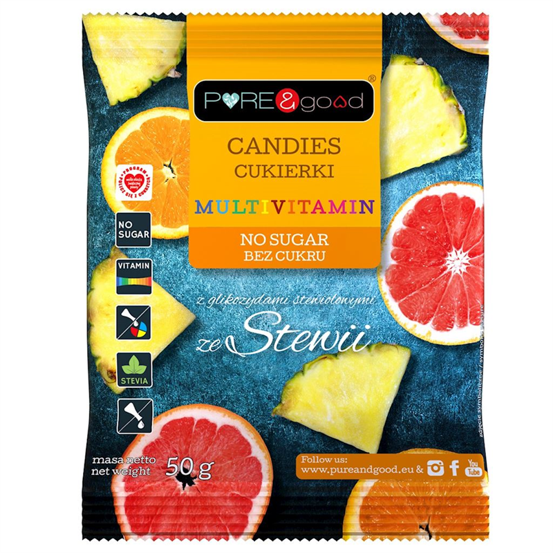 CUKIERKI MULTIVITAMIN ZE STEWIĄ BEZ CUKRU 50 g - PURE&GOOD