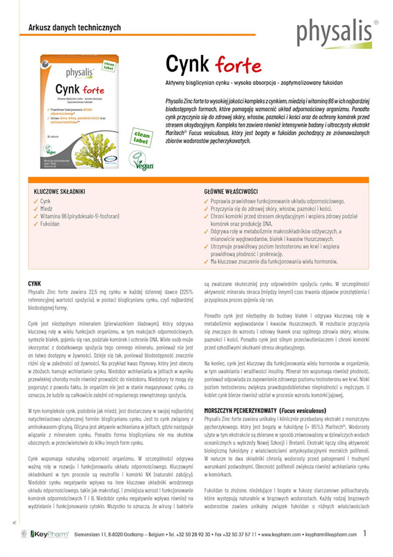 Physalis Cynk forte to wysokowartościowy kompleks zawierający cynk, miedź i witaminę B6 w ich najbardziej dostępnych organicznie formach, które przyczyniają się do prawidłowego funkcjonowania układu odpornościowego.