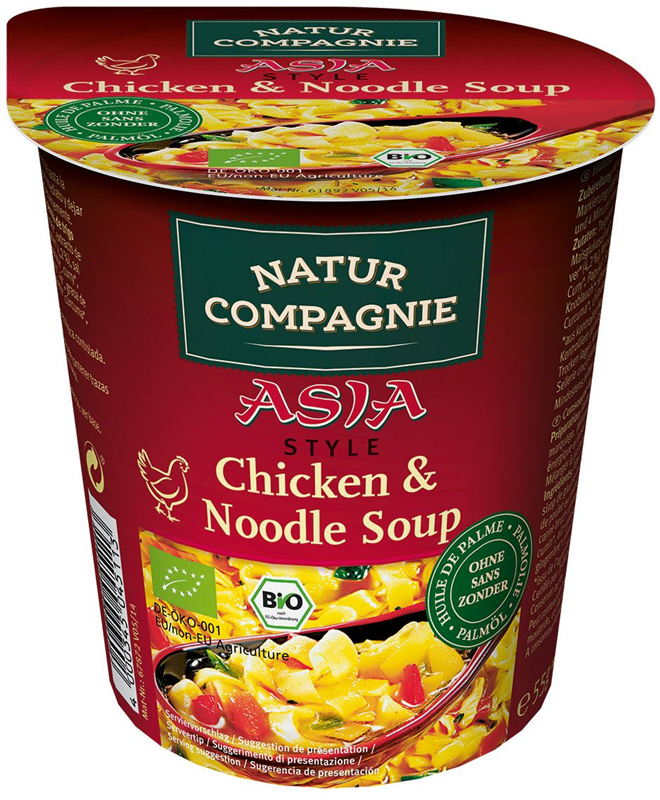 DANIE W KUBKU ZUPA Z KURCZAKIEM I MAKARONEM W STYLU AZJATYCKIM BIO 55 g - NATUR COMPAGNIE