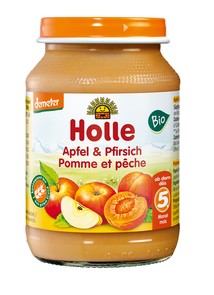 DESEREK JABŁKO - BRZOSKWINIA BEZGLUTENOWY OD 5 MIESIĄCA DEMETER BIO 190 g (SŁOIK) - HOLLE