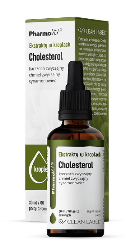 EKSTRAKTY W KROPLACH NA PRAWIDŁOWY POZIOM CHOLESTEROLU BEZGLUTENOWE 30 ml - PHARMOVIT (CLEAN LABEL)
