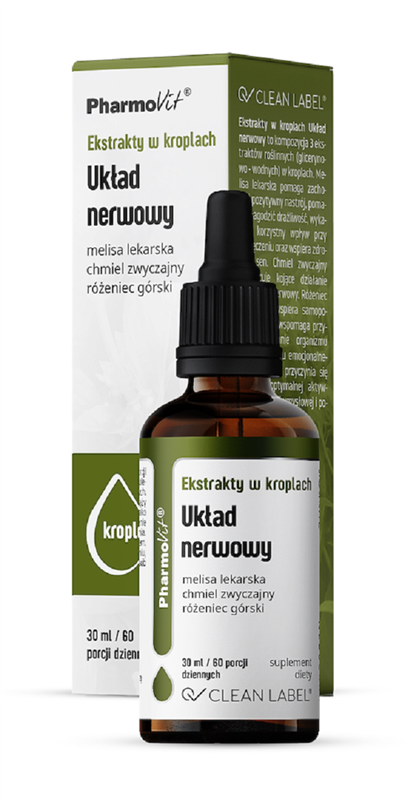 EKSTRAKTY W KROPLACH NA UKŁAD NERWOWY BEZGLUTENOWE 30 ml - PHARMOVIT (CLEAN LABEL)