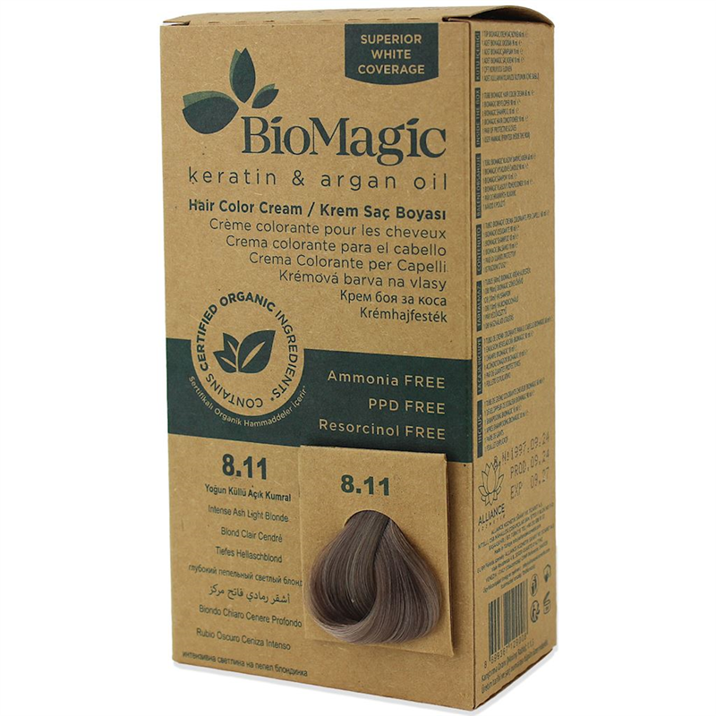 FARBA DO WŁOSÓW INTENSYWNY POPIELATY JASNY BLOND (8.11) 250 g - BIOMAGIC