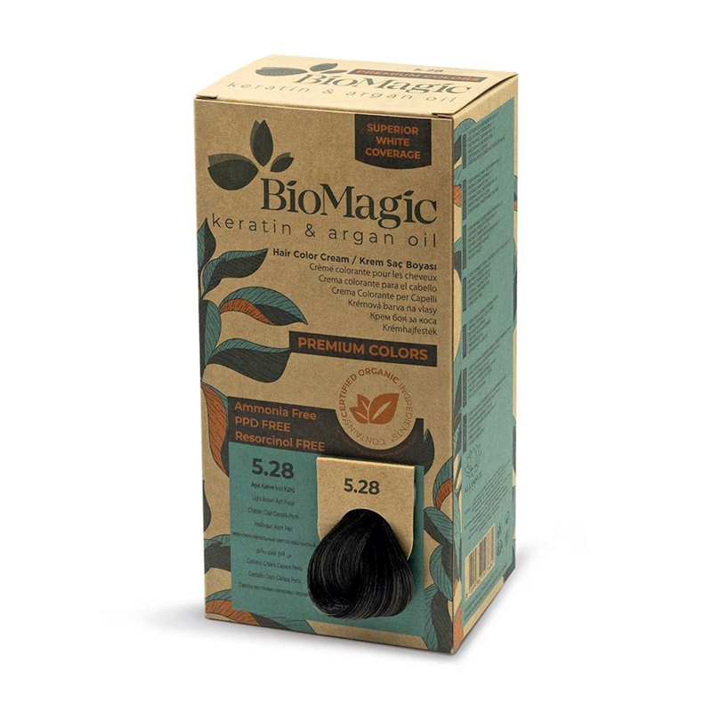 FARBA DO WŁOSÓW POPIELATO PERŁOWY JASNY BRĄZ (5.28) 170 ml - BIOMAGIC