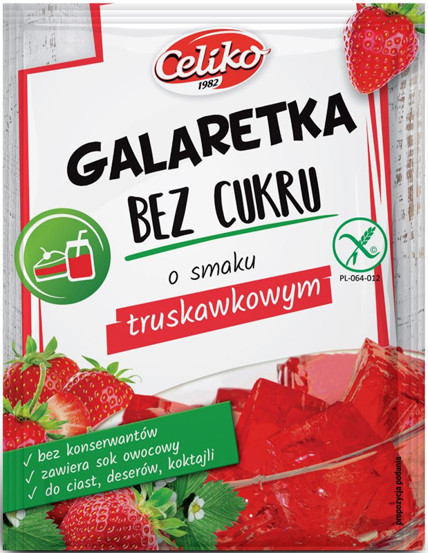Galaretka bez cukru Celiko jest przeznaczona dla osób stosujących dietę niskocukrową, dbających o linię i używających słodzików zamiast cukru. Stosując ją samodzielnie możesz kształtować smak i kaloryczność swojego deseru.