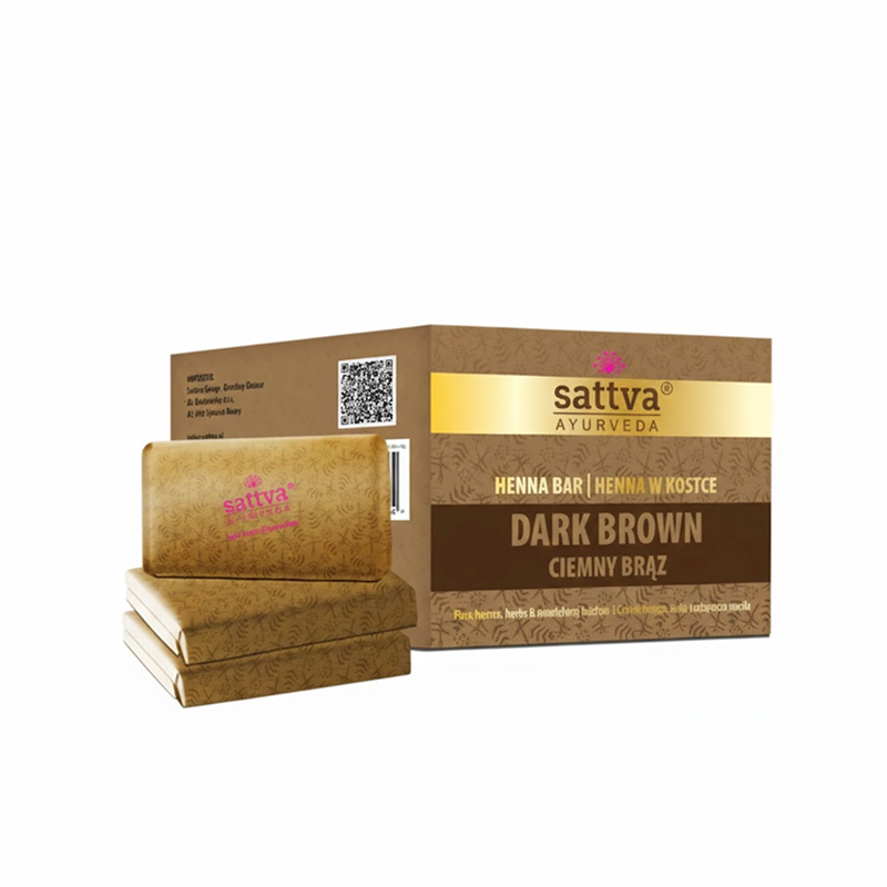 HENNA CIEMNY BRĄZ W KOSTCE ECO (3 x 80 g) 240 g - SATTVA (AYURVEDA)