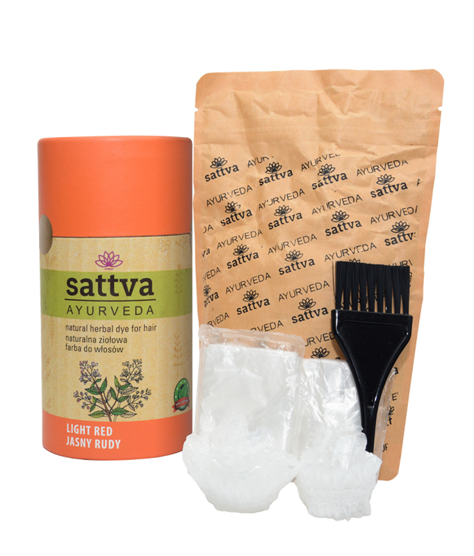 Opakowanie zawiera kompozycję ajurwedyjskich ziół, które nadadzą włosom jasny rudy odcień. W przypadku włosów ciemnych nadaje piękne miedziane refleksy.