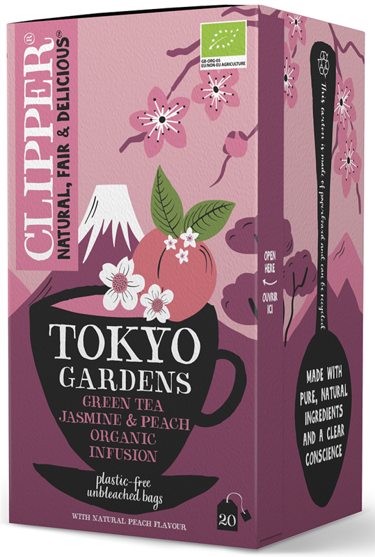 Clipper zabiera Cię do Japonii z tą nową, gotową do zaparzenia herbatą Balade Tokyo. Ten ekologiczny napar z zielonej herbaty jaśminowej, zrównoważony nutami cytrusów i brzoskwini, przywodzący na myśl japoński ogród w pełnym rozkwicie. Czeka Cię naprawdę pyszna filiżanka.