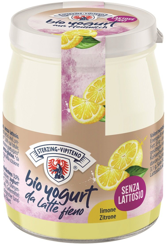 JOGURT CYTRYNOWY Z MLEKA SIENNEGO BEZ LAKTOZY BEZGLUTENOWY BIO 150 g (SŁOIK) - STERZING-VIPITENO
