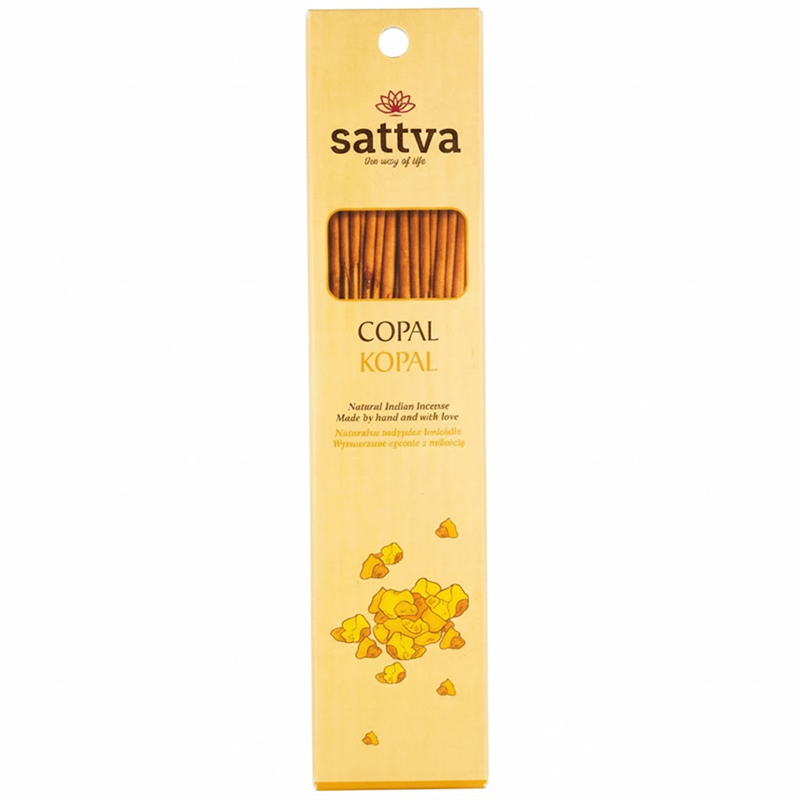 Kadzidło z kopalu, naturalnej żywicy pozyskiwanej z drzew rodzaju Daniella, emituje bursztynowo-drzewny aromat. Od czasów starożytnych kopal był ceniony za swoje właściwości lecznicze i stosowany podczas ceremonii religijnych. Palenia kadzidła z kopalu oczyszcza aurę pomieszczenia, usuwając negatywną energię i sprzyjając pozytywnym wibracjom. Jego kojący zapach łagodzi stres i napięcie nerwowe, wspierając samouzdrawianie ducha i ciała.