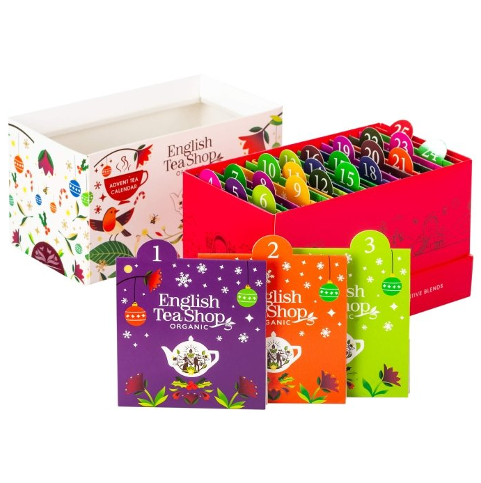 KALENDARZ ADWENTOWY (HERBATY I HERBATKI) BIO (LUXURY – 13 SMAKÓW) (25 x 1,78 g) 44,5 g (PRODUKT SEZONOWY) - ENGLISH TEA SHOP ORGANIC