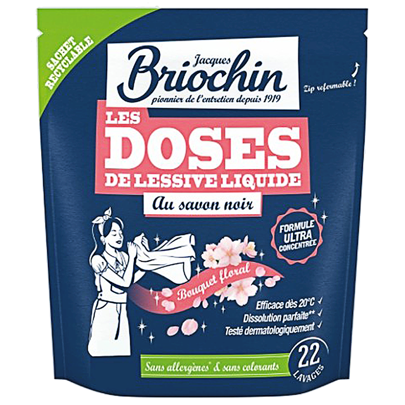 Kapsułki do prania Briochin na bazie szarego mydła o zapachu kwiatów to nowoczesne i wygodne rozwiązanie do codziennego prania. Skoncentrowana formuła łączy moc szarego mydła z delikatnym, kwiatowym aromatem, zapewniając doskonałe rezultaty prania nawet w niskich temperaturach.