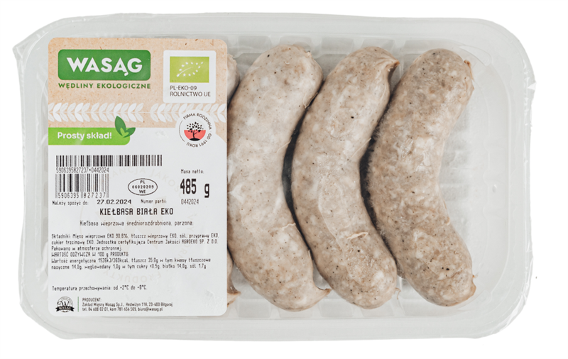 KIEŁBASA BIAŁA BIO 485 g (5 sztuk) - WASĄG (NA ZAMÓWIENIE)