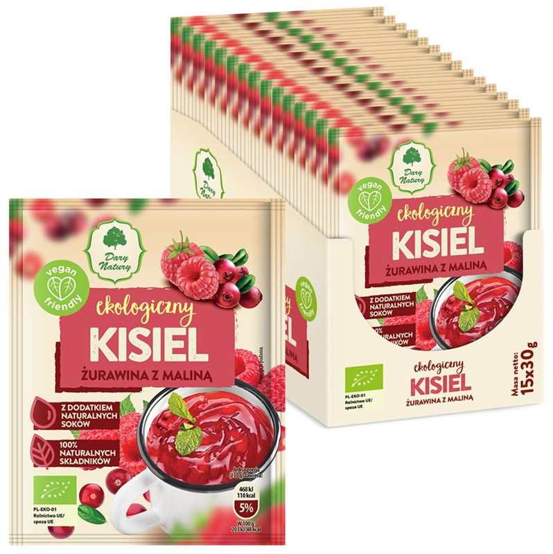KISIEL ŻURAWINA Z MALINĄ BEZGLUTENOWY BIO 30 g - DARY NATURY