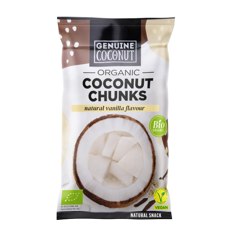 KOKOS KAWAŁKI ŚWIEŻE O SMAKU WANILIOWYM BEZGLUTENOWE BIO 30 g - GENUINE COCONUT