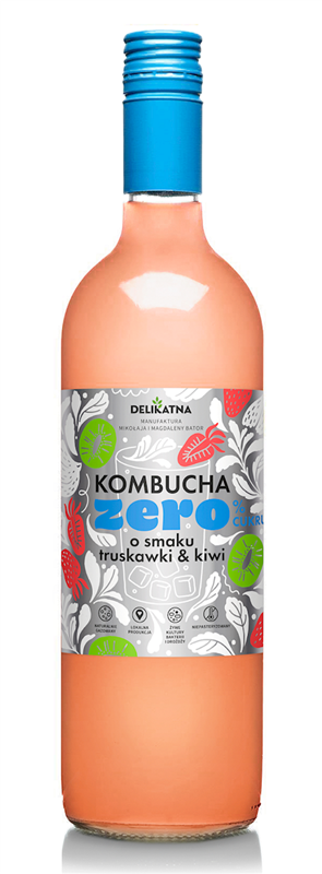 KOMBUCHA O SMAKU TRUSKAWKI I KIWI ZERO % CUKRU 700 ml - DELIKATNA (ZAKWASOWNIA)