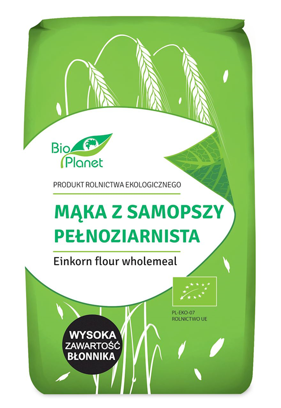 mąka z pszenicy samopszy pełnoziarnista* 100% (*certyfikowany składnik ekologiczny)