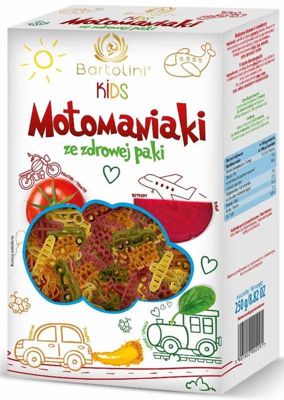 MAKARON (PSZENNY) 5-SMAKOWY DLA DZIECI MOTOMANIAKI 250 g - BARTOLINI