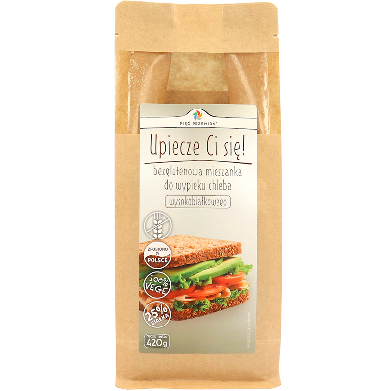 MIESZANKA DO WYPIEKU CHLEBA WYSOKOBIAŁKOWEGO BEZ DODATKU CUKRÓW BEZGLUTENOWA 420 g - PIĘĆ PRZEMIAN