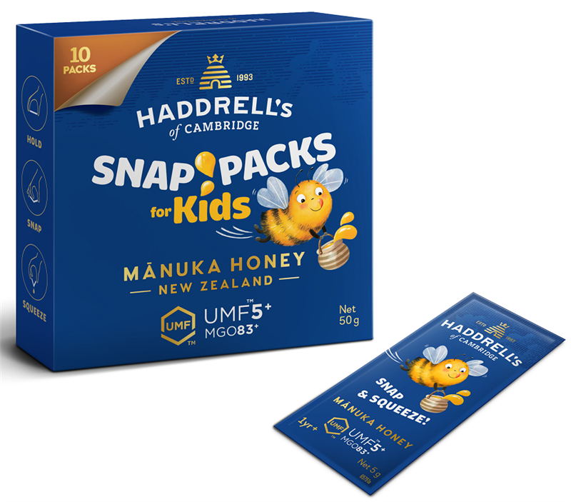 MIÓD MANUKA KIDS MGO 83+ UMF 5+ 10 SASZETEK - HADDRELL'S OF CAMBRIDGE