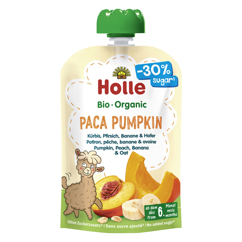 MUS DYNIOWA ALPAKA (DYNIA - BRZOSKWINIA - BANAN - OWIES) BEZ DODATKU CUKRÓW BEZGLUTENOWY OD 6 MIESIĄCA DEMETER BIO 100 g - HOLLE