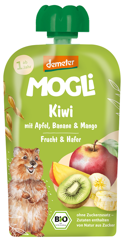 MUS JABŁKO - BANAN - KIWI - MANGO - OWIES BEZ DODATKU CUKRÓW OD 1 ROKU DEMETER BIO 100 g - MOGLI
