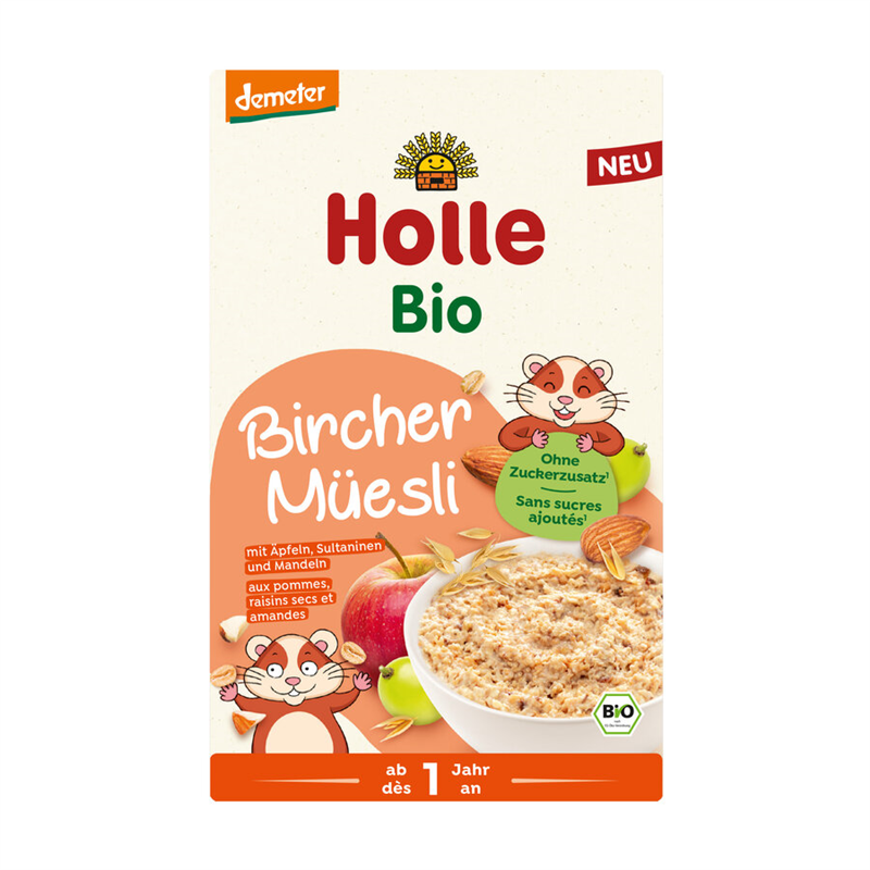 MUSLI BIRCHERA Z JABŁKIEM, RODZYNKAMI I MIGDAŁAMI BEZ DODATKU CUKRÓW OD 1 ROKU DEMETER BIO 200 g - HOLLE