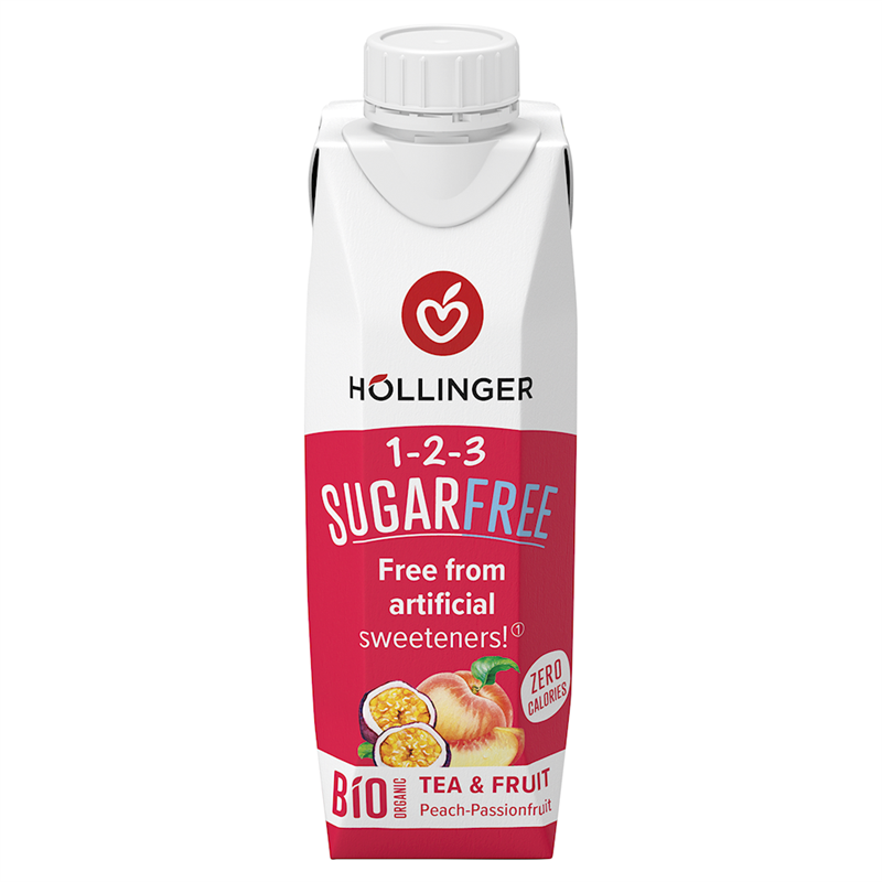 NAPÓJ O SMAKU BRZOSKWINIA - MARAKUJA BEZ CUKRU BIO 300 ml - HOLLINGER