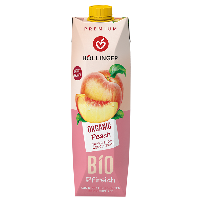 Ekologiczny nektar brzoskwiniowy, nie z koncentratu. Zawartość owoców minimum 50 %. Produkt pasteryzowany.