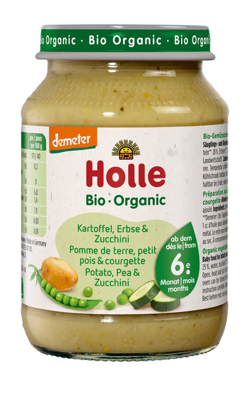 OBIADEK ZIEMNIAK - GROSZEK - CUKINIA BEZ DODATKU CUKRÓW BEZGLUTENOWY OD 6 MIESIĄCA DEMETER BIO 190 g (SŁOIK) - HOLLE