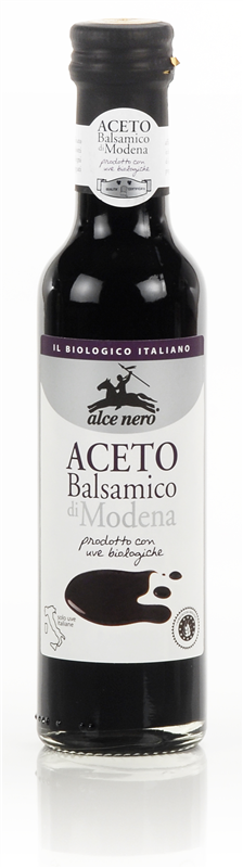 Ocet balsamiczny z Modeny z ekologicznych winogron Emilian, leżakowany w tradycyjnych drewnianych beczkach. Stanowi wyśmienity dodatek do potraw kuchni śródziemnomorskiej, m.in. do mięs, sałat, marynat i sosów. Kwasowość: 6%.