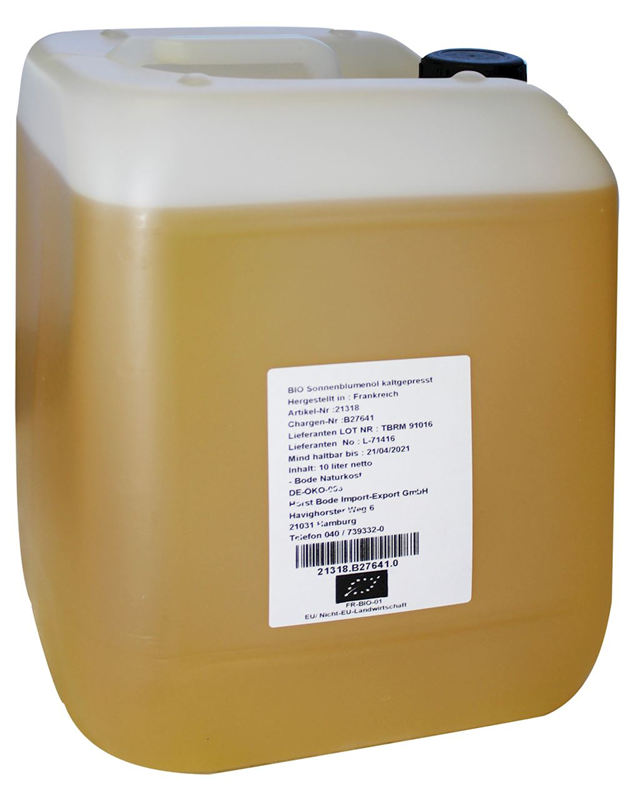 OLEJ SŁONECZNIKOWY TŁOCZONY NA ZIMNO BIO 10 L - HORECA