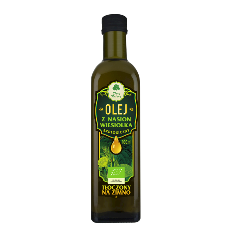 Olej tłoczony na zimno z nasion wiesiołka dwuletniego pochodzących z polskich ekologicznych gospodarstw rolnych. Olej można dodawać do różnych potraw lub spożywać sam.