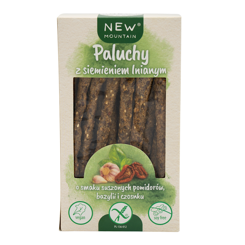 PALUCHY Z SIEMIENIEM LNIANYM, POMIDORAMI, CZOSNKIEM I BAZYLIĄ BEZGLUTENOWE 200 g - NEW MOUNTAIN
