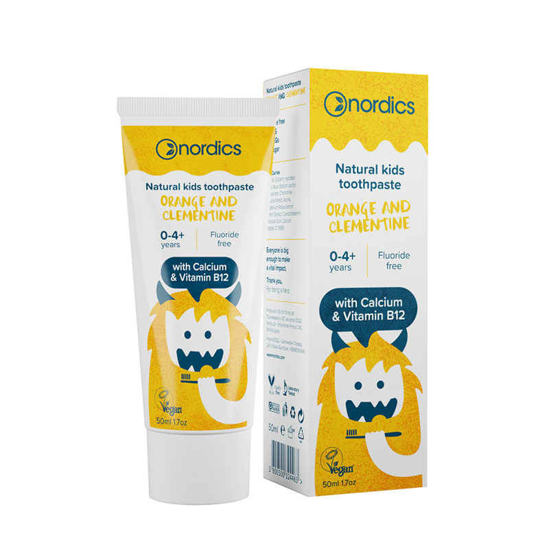 PASTA DO ZĘBÓW DLA DZIECI OD 0 DO 4 LAT O SMAKU POMARAŃCZY I KLEMENTYNKI BEZ FLUORU 50 ml - NORDICS