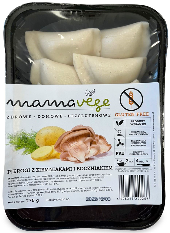 PIEROGI Z ZIEMNIAKAMI I BOCZNIAKIEM BEZGLUTENOWE 275 g - MAMA VEGE