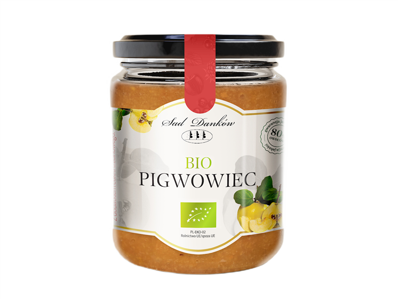 100 g produktu sporządzono z 80 g owoców pigwowca i 37 g cukru. Produkt pasteryzowany, otrzymany przez gotowanie owoców pigwowca z dodatkiem cukru trzcinowego, bez dodanej wody. Smak słodko-kwaśny charakterystyczny dla owoców pigwowca, barwa zbliżona do barwy owoców.