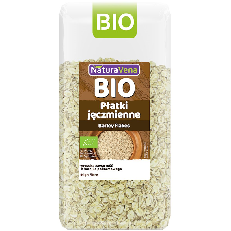 Ekologiczne płatki JĘCZMIENNE uzyskuje się z gniecionych ziaren jęczmienia. Płatki JĘCZMIENNE to doskonała propozycja na codzienne śniadanie. Najlepiej smakują z dodatkiem jogurtu, napoju zbożowego oraz z owocami.