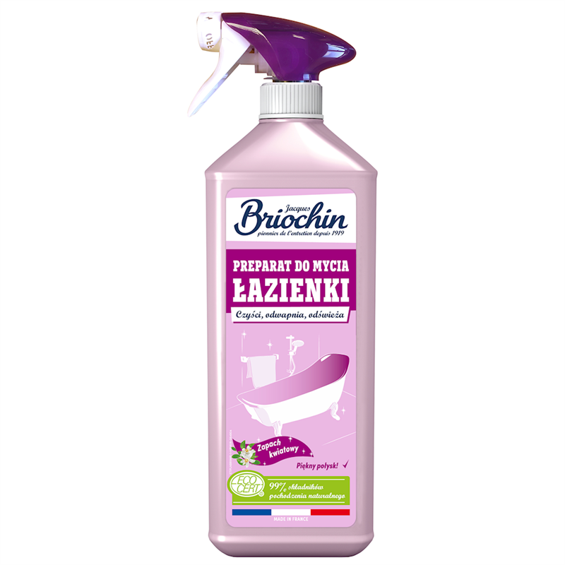 Preparat do mycia łazienki Briochin to naturalny, wielofunkcyjny środek opracowany przez francuskich rzemieślników. Jego formuła to gwarancja skuteczności w usuwaniu osadów z kamienia, śladów po wodzie, resztek mydła oraz kurzu. Produkt doskonale myje, odwapnia i odświeża powierzchnie w łazience, przywracając im nienaganny blask i wypełniając przestrzeń sosnowym zapachem.