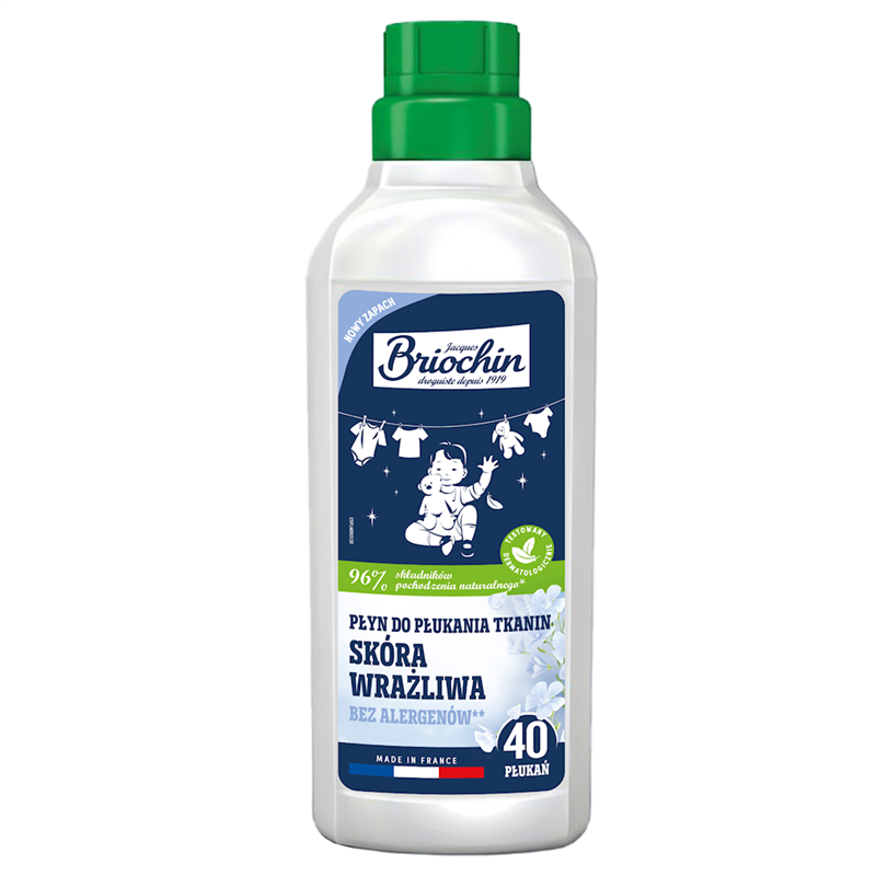 Płyn do płukania tkanin Briochin, stworzony z myślą o osobach o wrażliwej skórze i alergikach, łączy w sobie skuteczność z wyjątkową delikatnością. Formuła oparta w 96 % na składnikach pochodzenia naturalnego gwarantuje, że produkt jest bezpieczny dla skóry, minimalizując ryzyko podrażnień oraz reakcji alergicznych. Jego wyjątkowa kompozycja nie zawiera alergenów, sztucznych barwników ani wybielaczy optycznych, co czyni go idealnym rozwiązaniem do pielęgnacji odzieży dziecięcej oraz dla osób z problemami skórnymi.
