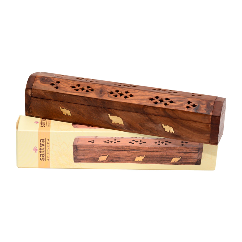 PUDEŁKO DREWNIANE NA KADZIDŁO Z MOTYWEM SŁONIA - SATTVA